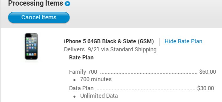 Apple website: processing, delivery sept 21