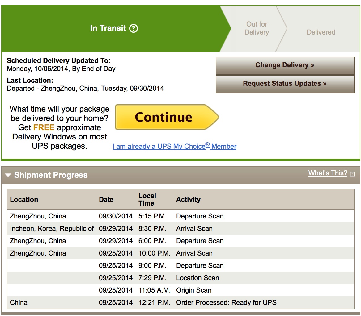 But when I go to check the package it says this on ups website: