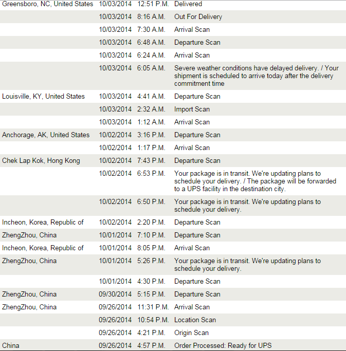 I thought I'd share my UPS tracking information to help those of you who are still waiting on your iPhones get a better idea of what you might experience.