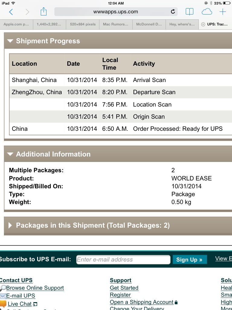 I'm going to call UPS and see what is up with mine too. Expected delivery is today and yet it didn't even leave Memphis yet. Getting rather annoyed especially considering it is still being shipped using an expedited service over the original apple shipping.