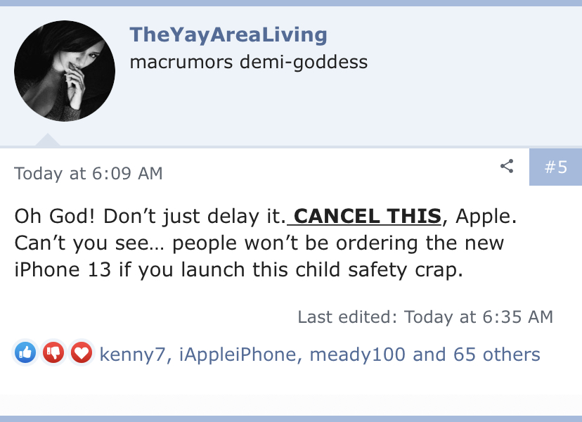 Just waiting on Tim to cancel this CSAM, waiting for him to read all these comments. People are against this feature. That’s the bottom line. 🥺