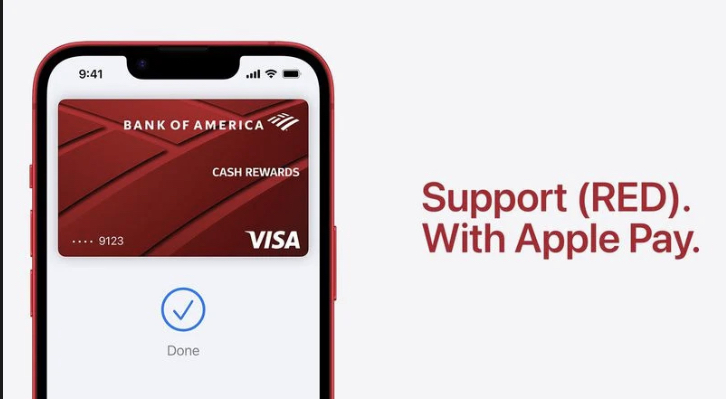 The new Apple (RED) promo uses the image of a Bank of America Visa card instead of an Apple card