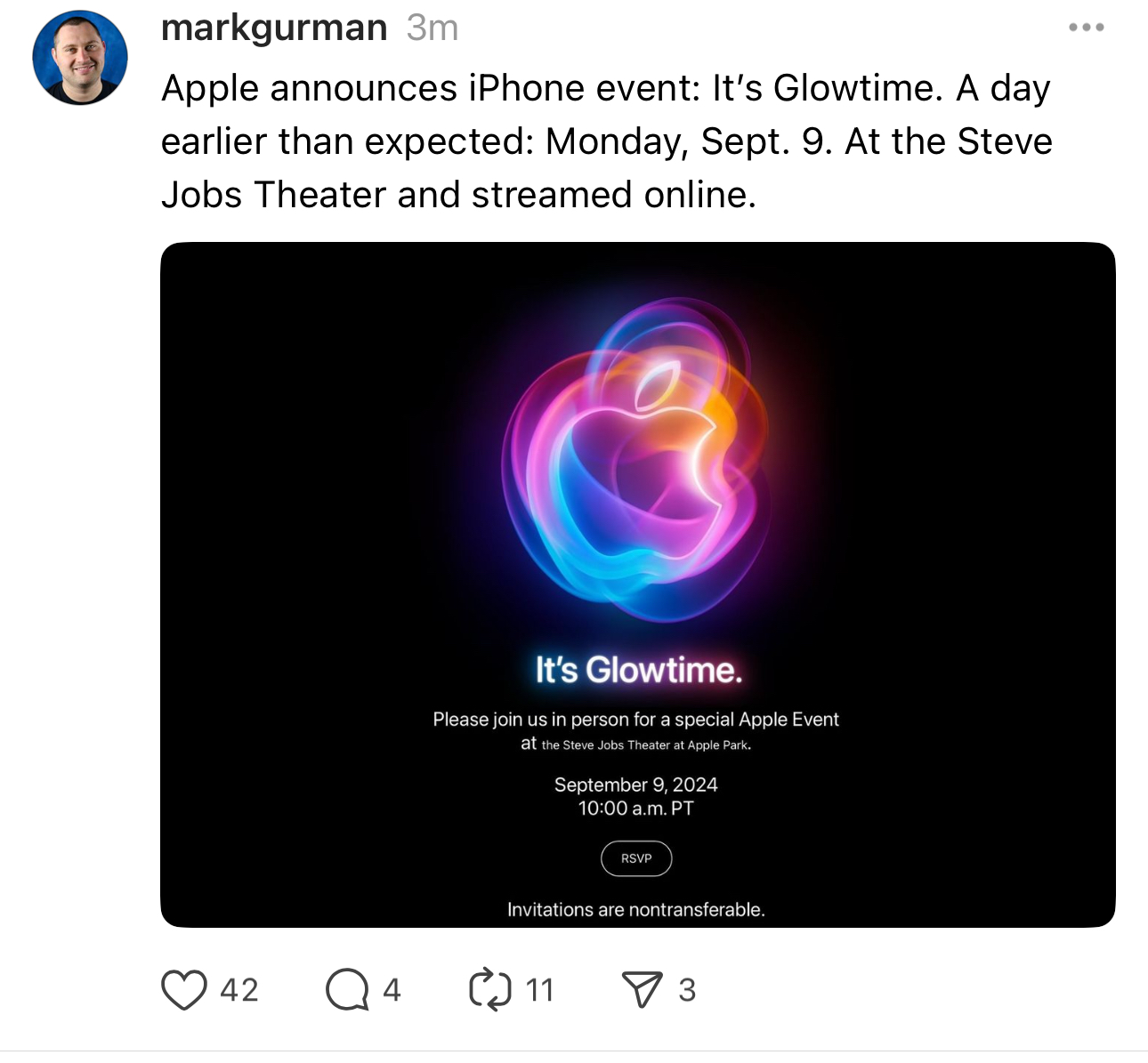 Article Link: Apple Event Announced for September 9: 'It's Glowtime'