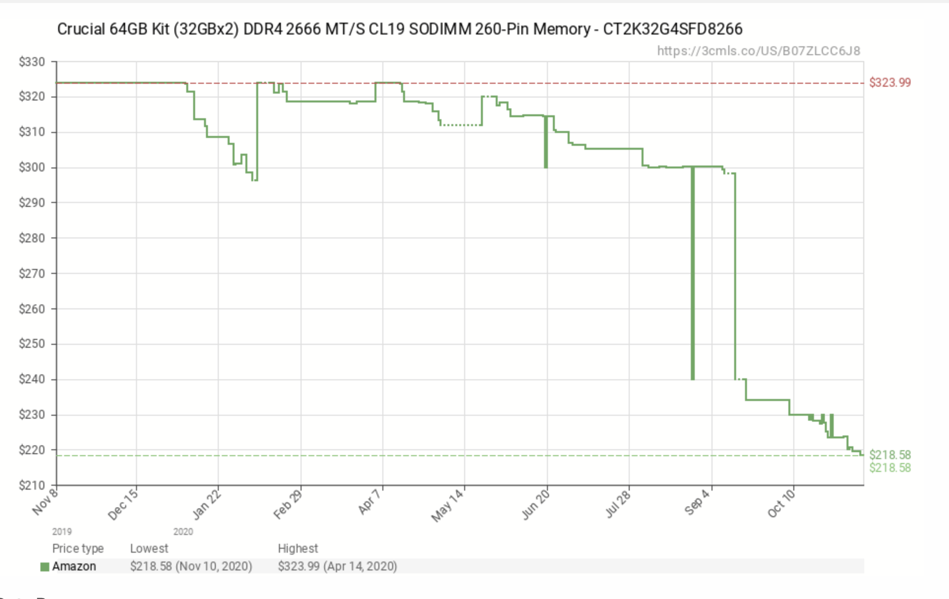 I have 64GB in my 2018 Mac Mini, price on ram for it is now at its lowest I've seen it:Hmmm now that I saw base Mini is 4GB, might depend on what upgrades cost. What is a good amount on a Mac for just moderate stuff maybe some 3d games if they even have them. And also have to check base SSD and costs of upgrades there