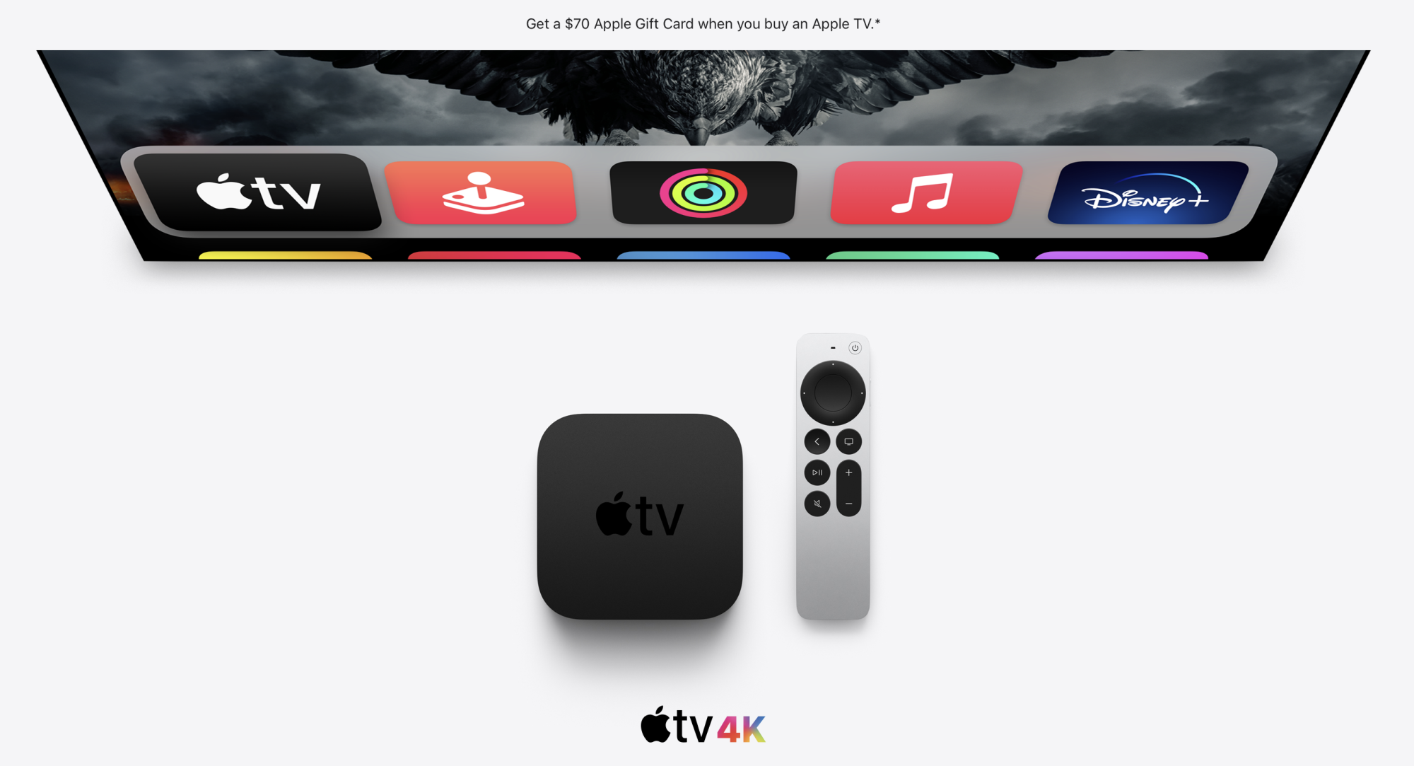 The gift card offered in the promotion can only be used for future Apple purchases and can't be used on the Apple TV purchase itself. Rumors suggest Apple is working on a new Apple TV that could launch this year, and the gift card promotion could be a means of clearing inventory ahead of the new model.