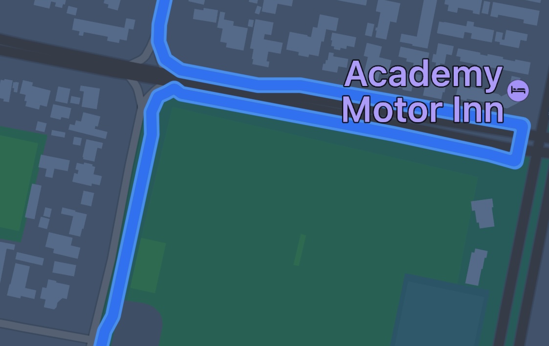 That inspired me to check the walking route near me. Apple Maps is correct, sending you down a walking track. Google Maps sends you down a car-only road. The track used to be shown on Google Maps but no longer is, but previously if you dragged the route onto the track (to force it to take it) then it added a ~3 km deviation to the route.Navigation has gotten worse. Here is a walking route, there is a specific pedestrian place to cross straight over the road which would cut out the loop. This manoeuvre would also be impossible in a car.