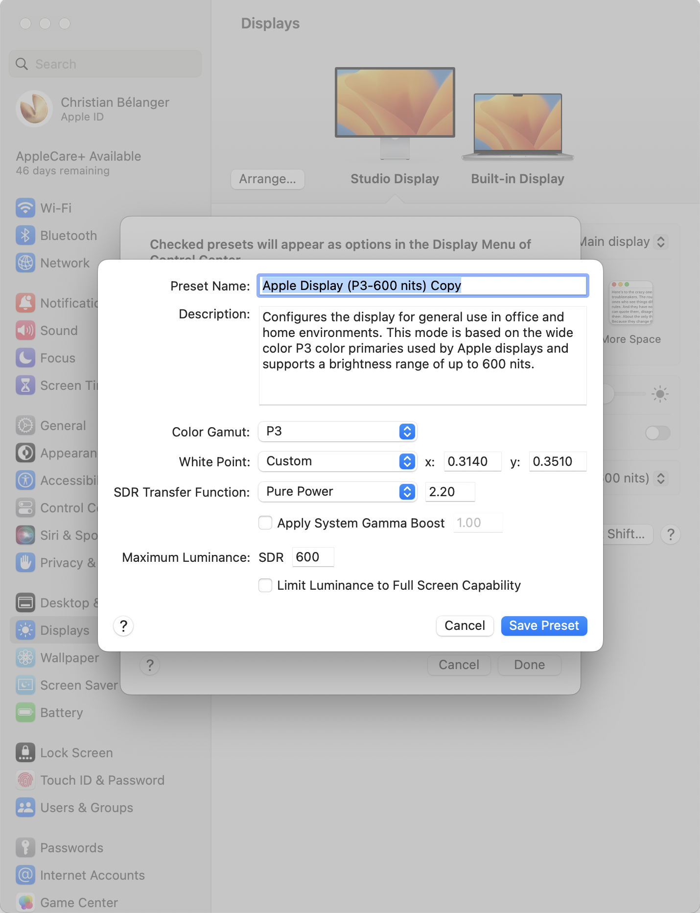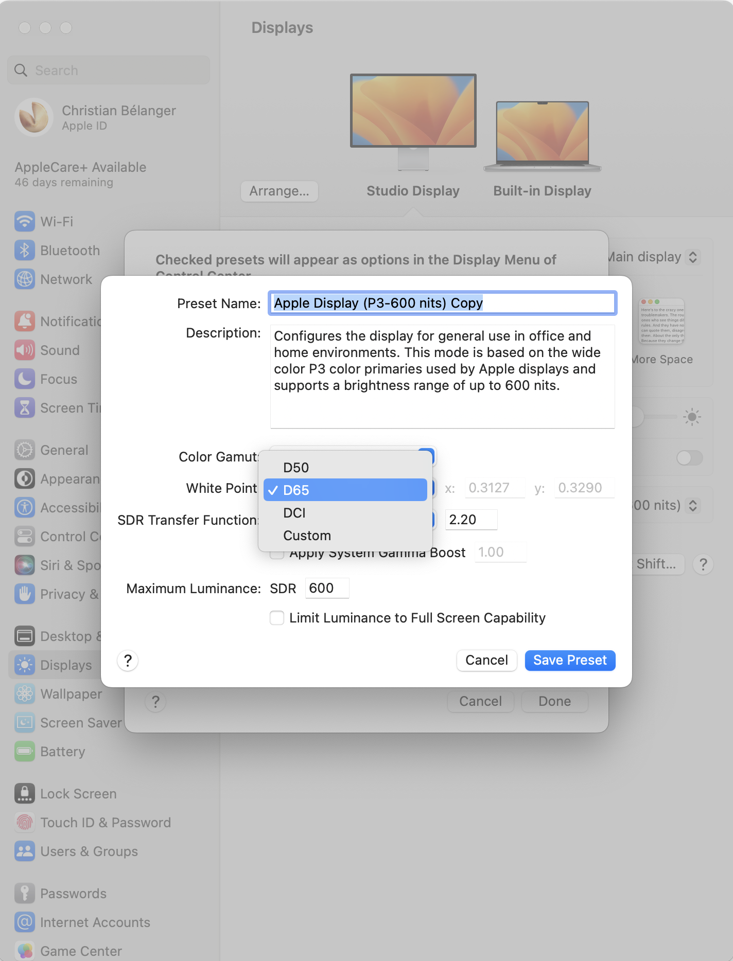 Wow. Am I glad I found this. I just received my brand new MacBook Pro M2 16-Inch and my Studio Display.So wait... They removed or hid the built in Display Calibration Assistant and color profiles for these presets where you are limited to adjusting the white point and luminance only? Apple's factory calibrations have always been and continue to be awful (to my eyes) - and the default calibration on the XDR displays are no exception. Color correction and color profiles are a big part of display calibration.