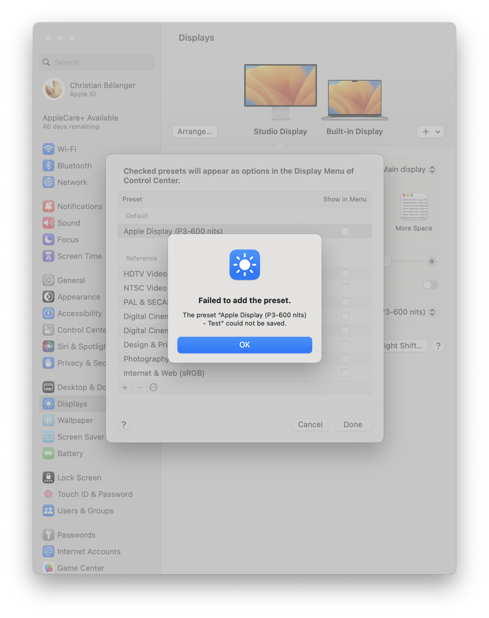 "My Studio Display is too cold (blue) compared to the display of my MacBook Pro."