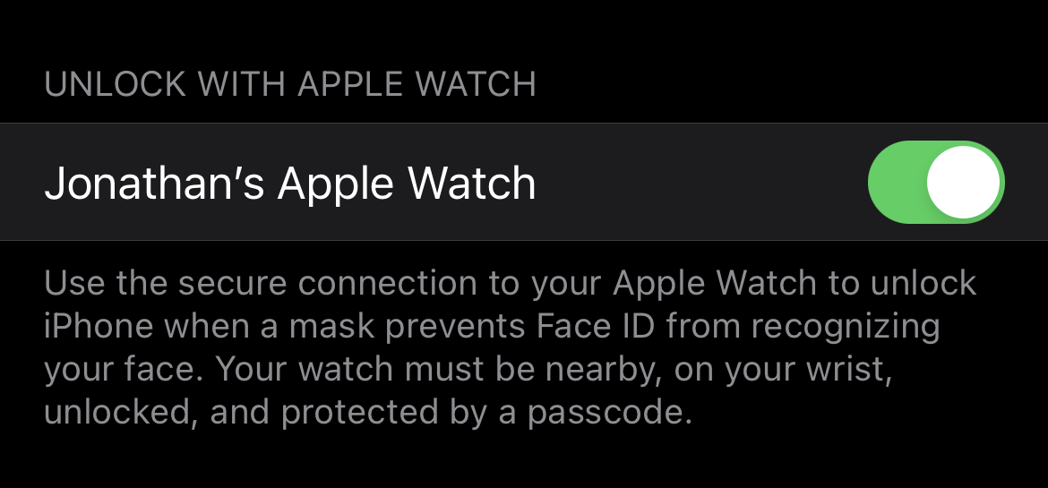 2) I don't get why it won't let you configure your security settings to just use your Apple Watch and proximity settings to fully unlock everything (including passwords). If you're really worried about a security risk, fine, you don't have to enable that. But why not make it configurable for the user to set it up as loose or as secure as they are comfortable with? If I'm wearing my Apple Watch and have a FaceID iPhone, I should be *allowed* to configure it to let me unlock it just by swiping up when my Apple Watch is on and nearby. I don't need them to be my nanny and do worry about what, in my opinion and in my personal situation, is a small risk that I'm willing to accept. And taking things to the extreme...if someone threatens you with a gun, they'll likely get you to comply with unlocking your iPhone with FaceID, anyway.
