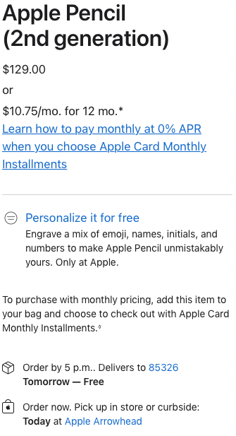 My wife bought an iPad Air with the back to school promo and ive been trying to order her an Apple Pencil and magic keyboard and im having a hell of a time. I've ordered and canceled so many times because of the longer then promised delivery times. I started this last Thursday (July 14th), I attempted to order the pencil and magic keyboard, both showed as available for next day express delivery, opted to pay with Apple Card and gift card, hit submit and it bounced me to the screen where you select either delivery or in store pick up....ok, thats strange, repeated order process, still shows Friday the 15th as the delivery date, hit submit again and the order is submitted.