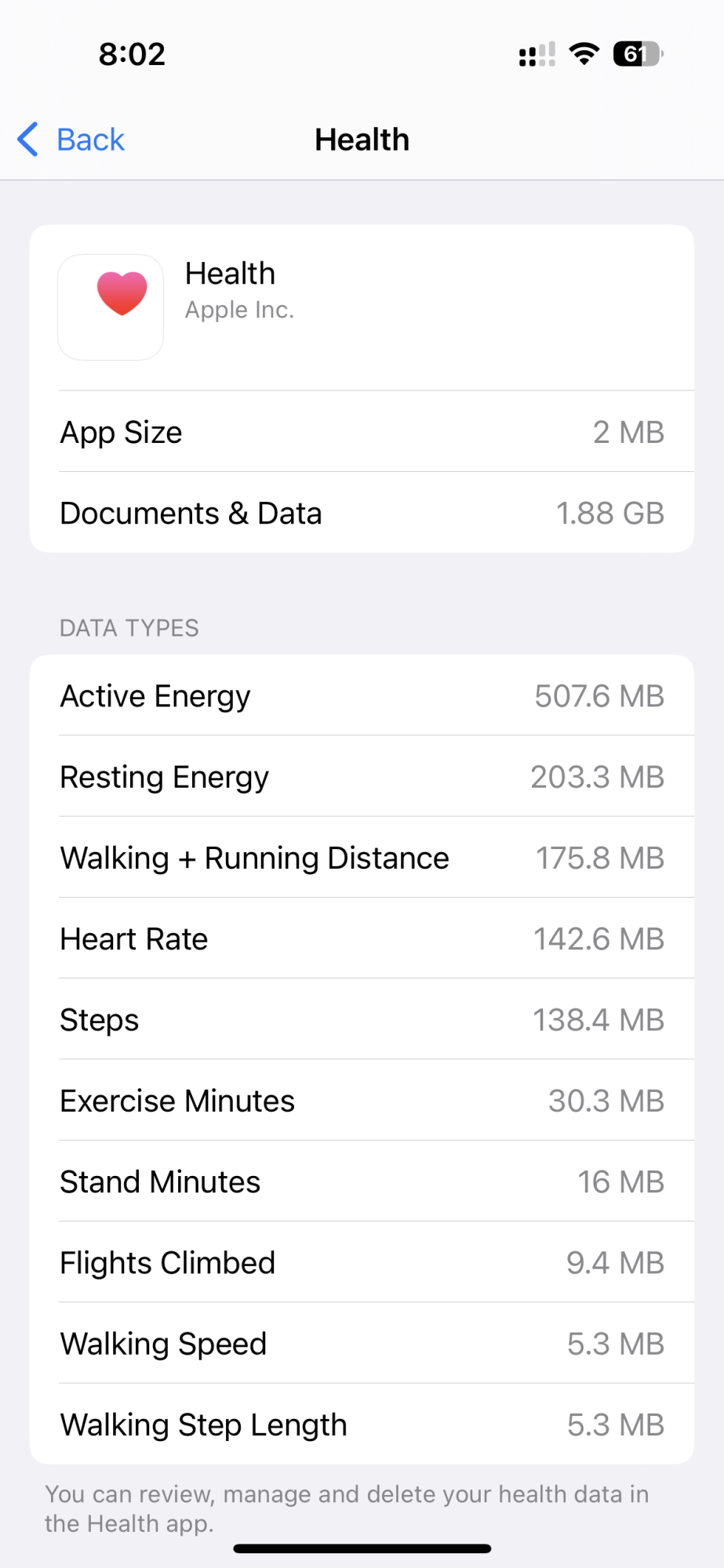 Mine is 1.88GB!! Is this reasonable? I got my first Apple Watch in 2015. Is this my punishment for closing my rings daily 🤣