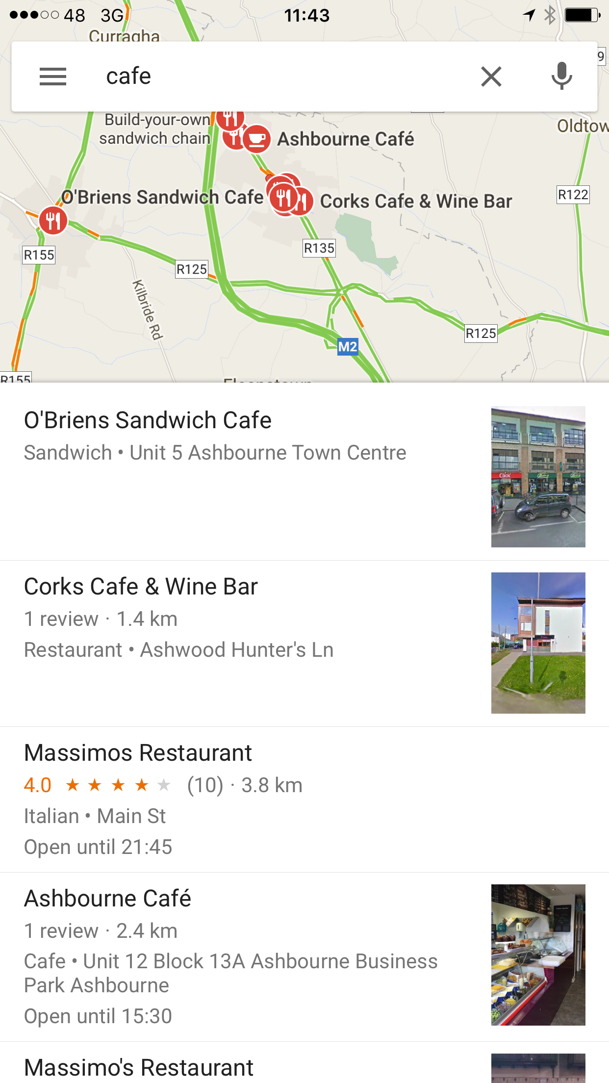 According to Apple maps, my nearest cafe is 24km away. I don't think that's correct.