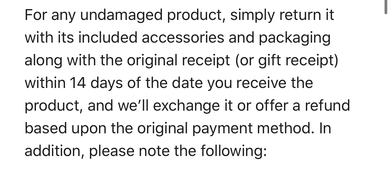 It’s actually 14 days but if you go to the Apple store and talk to the manager within 30 days they most likely honor it. Also, we had a holiday return policy in place too.When did it increase to 30 days?