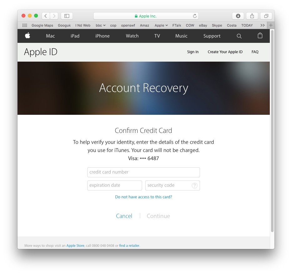 I hope to keep this brief ... I forgot my apple id, during the reset process (mobile number etc) I was asked for c/card number, expiry date and security code, I entered all of this CORRECTLY but kept getting a message "Not correct" ... so I entered into a password reset routine, this means that after 3 or 4 days I would receive an email explaining how to reset, 5 days later I get a bit concerned, eventually got through to an Apple help desk and was told that as there had been some problems, it was not a few days at the moment but 4-6 WEEKS. I have an iMac, iPhone and iPad and constanly get, every few seconds, a popup asking for my ID or password, it's a total pita ..... anyone any ideas about what I can do please ? ... Roger