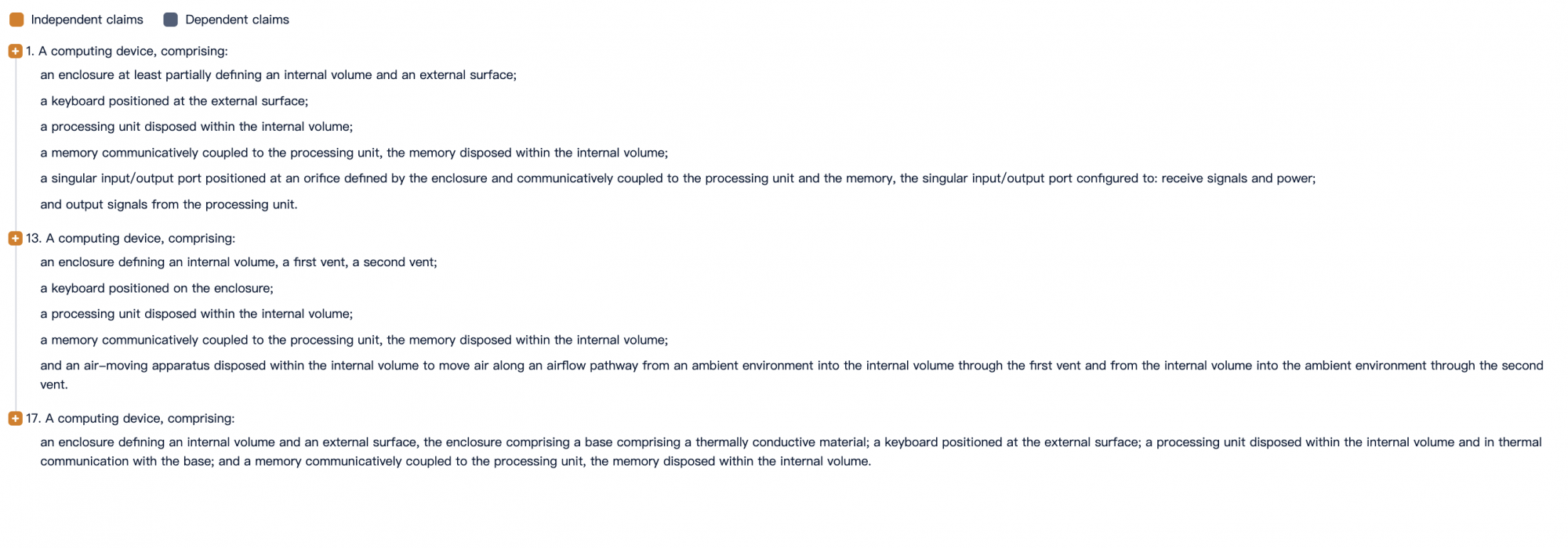 So I had a look and there are actually no "computer inside a keyboard" patents out there across 124 jurisdictions, so a patent search would give it the all clear. The question is from a novelty perspective, there are clearly computers inside keyboards such as rasberry PI keyboards and also the 80s ones mentioned in this thread. Below are the independent claims for the invention. The first claim is of highest significance, where the only unique feature vs. the prior art (anything similar from the past) mentioned in this thread is "A singular output/input port". In my opinion that does not constitute an inventive step.