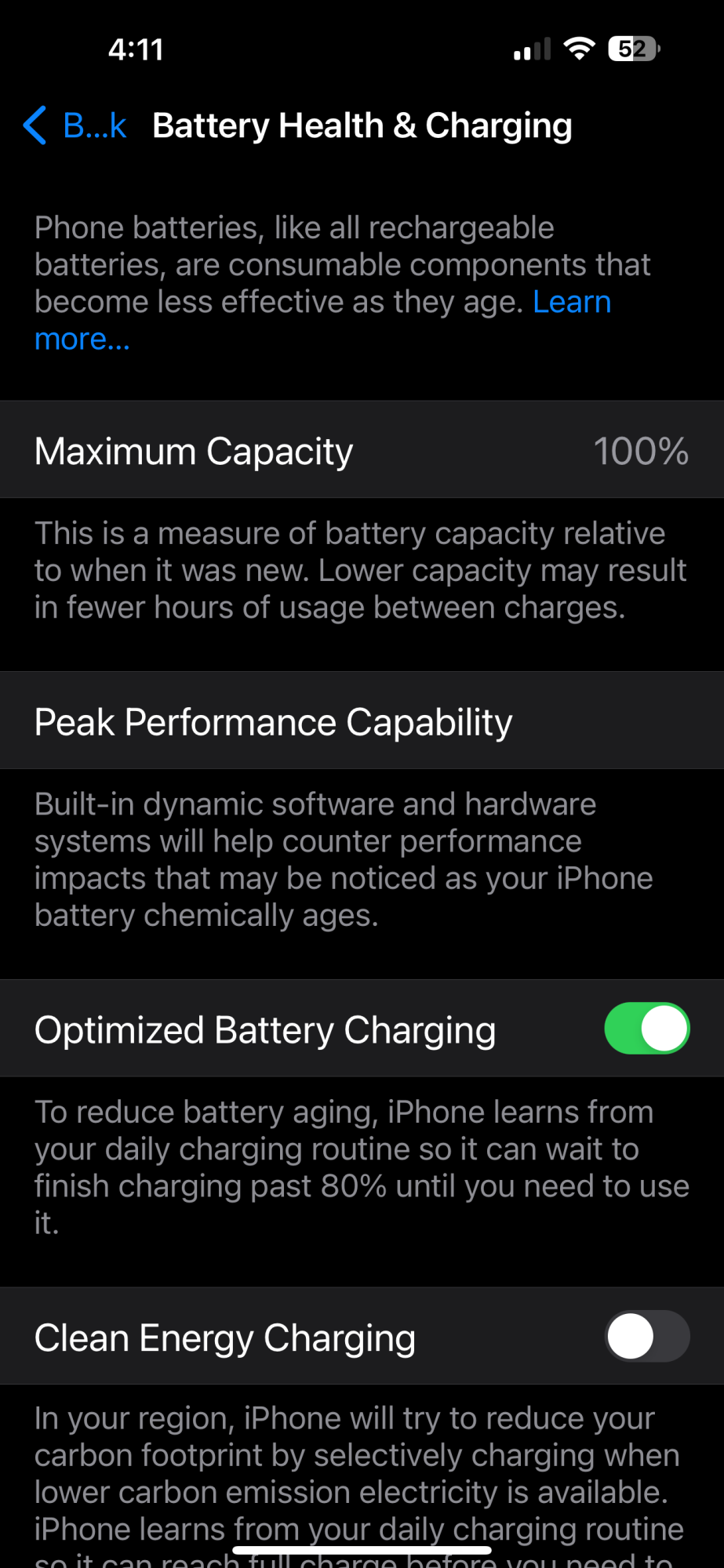 What's your capacity remaining?My iphone 15 pro battery is absolute trash since day one, maybe the overheating during first month destroyed it but my iPhone 13 battery was much much better.