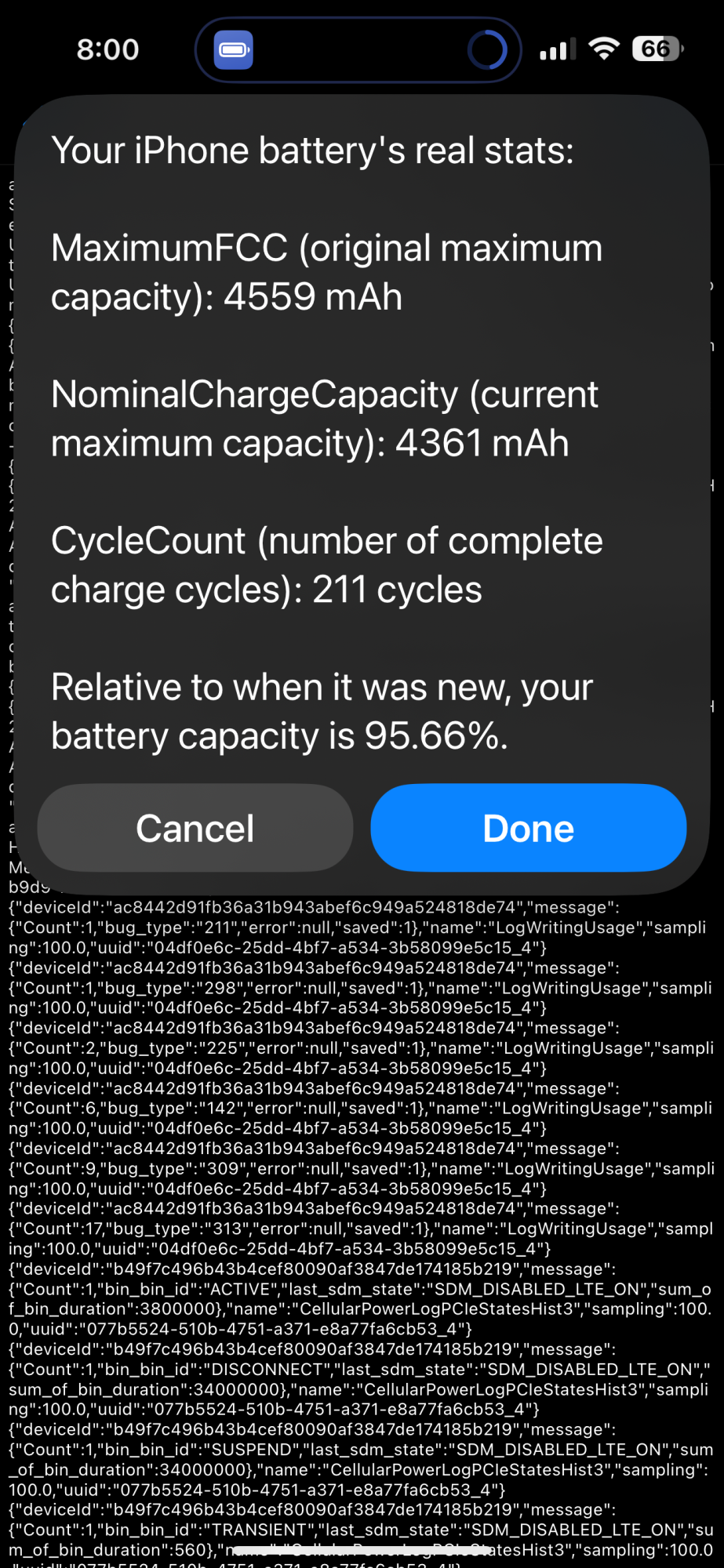 No thats 95% of the 4559 mAh battery in my phone. It’s a larger capacity than the standard apple uses to measure for 14 PMs, 4323 mAh.95.66% no?