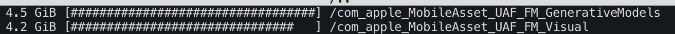Woke up on Saturday morning to find a notification on my Air announcing that the machine was now ready for Apple Intelligence. Curious, I checked my disk space and lo and behold 9Gb had disappeared overnight. The culprits appear to be these two files: