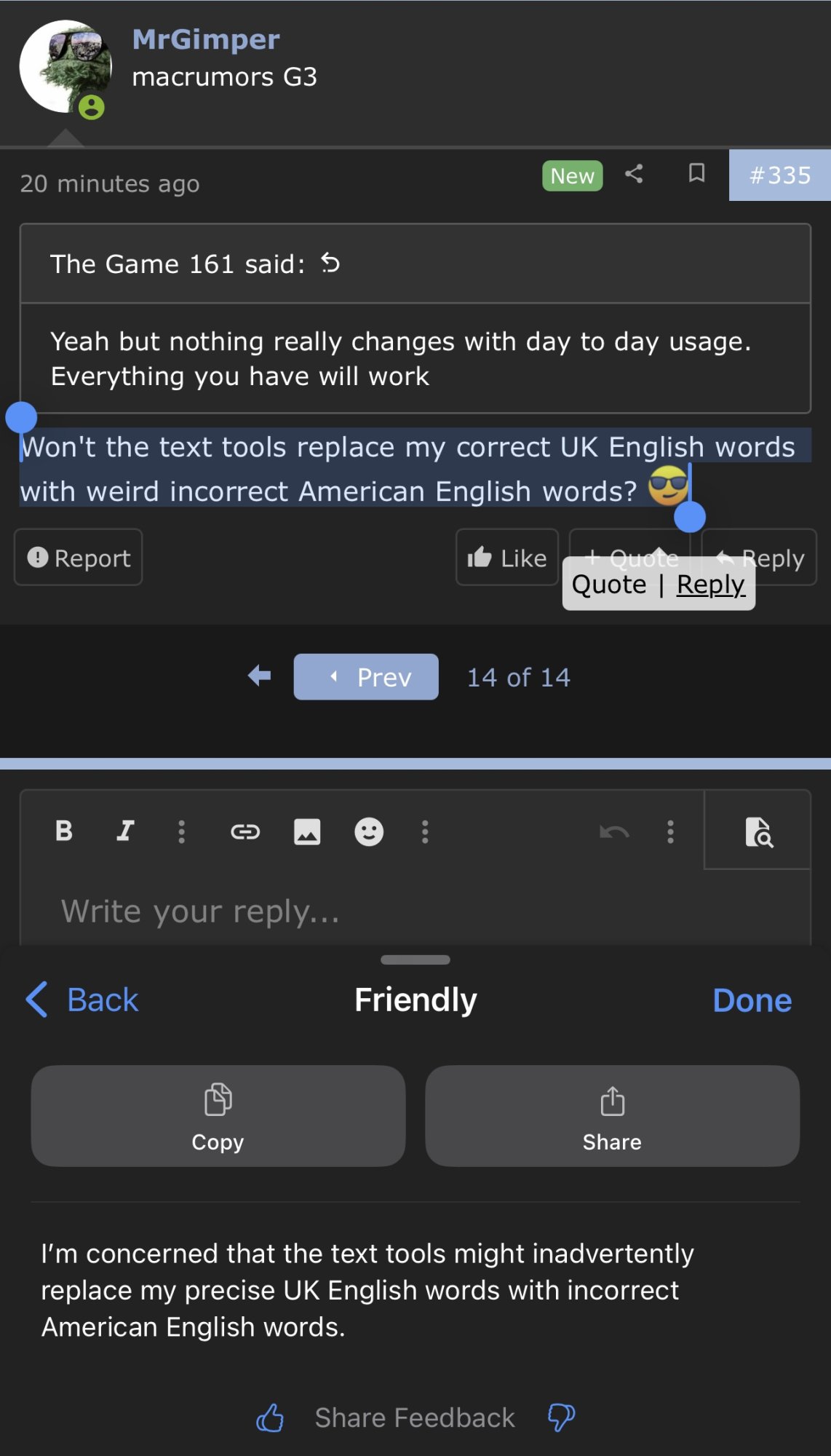 Won't the text tools replace my correct UK English words with weird incorrect American English words?Yeah but nothing really changes with day to day usage. Everything you have will work