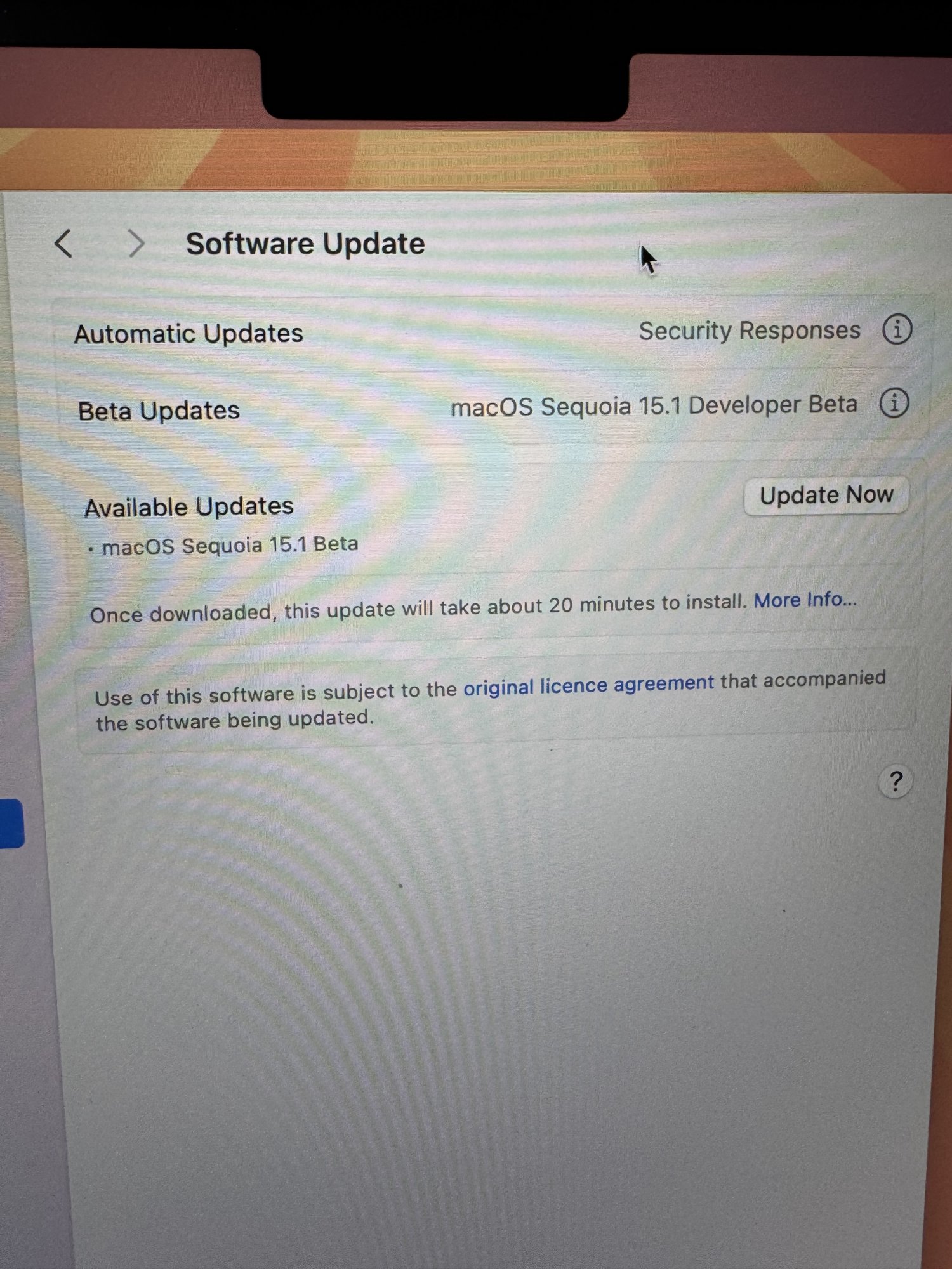 You need to change the beta updates to 15.1 by clicking the i.Anybody getting the Sequoia update? I'm not seeing it.