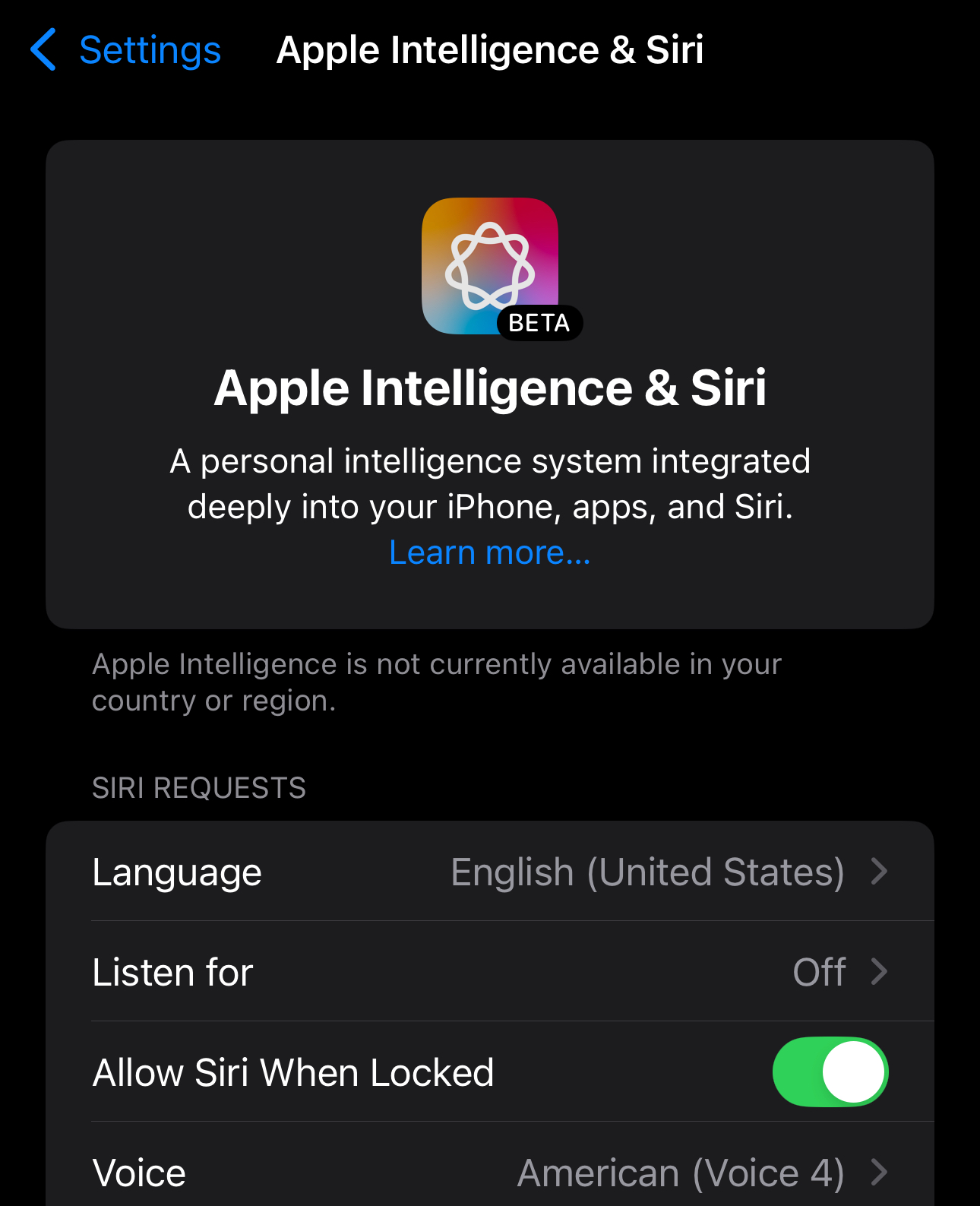 After updating, turning on Apple Intelligence can be done in the Settings app. There is an Apple Intelligence Waitlist that developers must opt into, but access should be granted within a few hours.