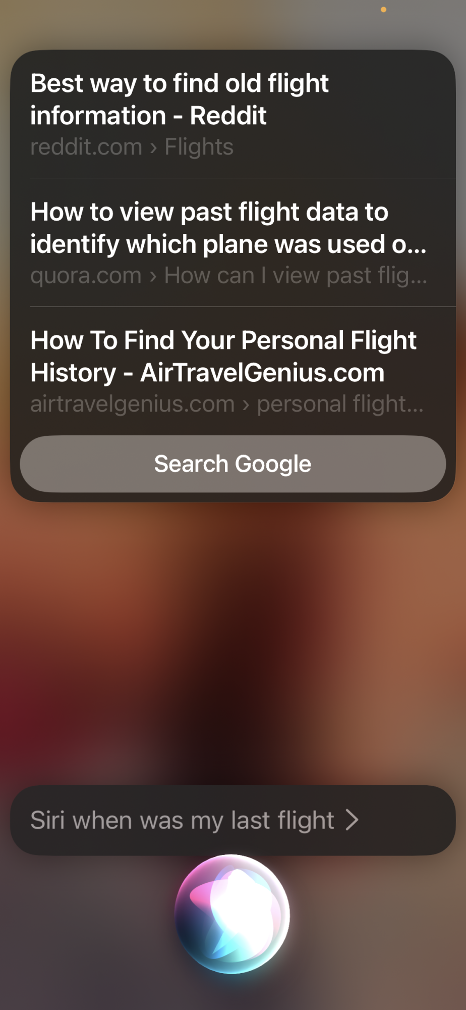 “Siri, when was my last flight” just yielded this, so don’t get your hopes too high