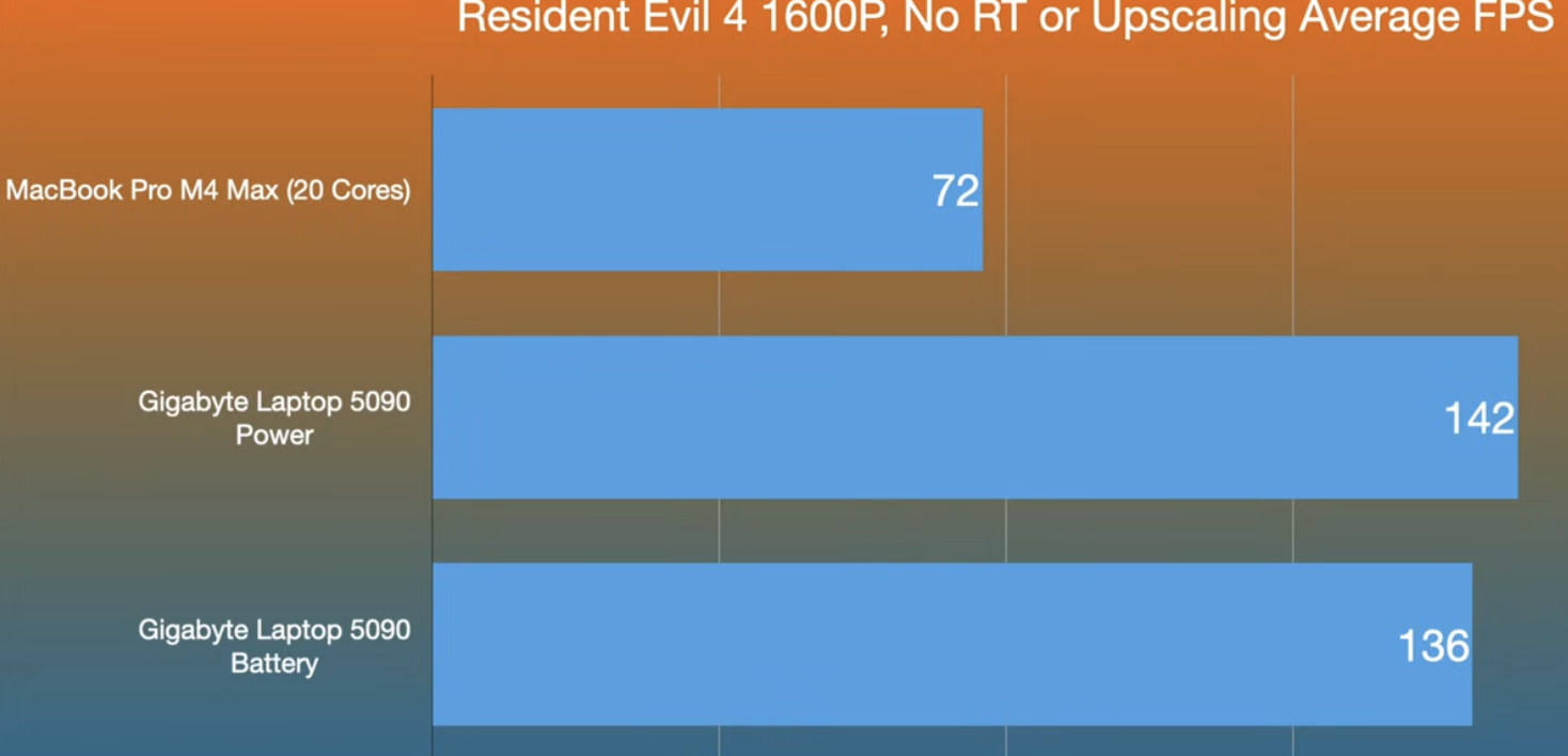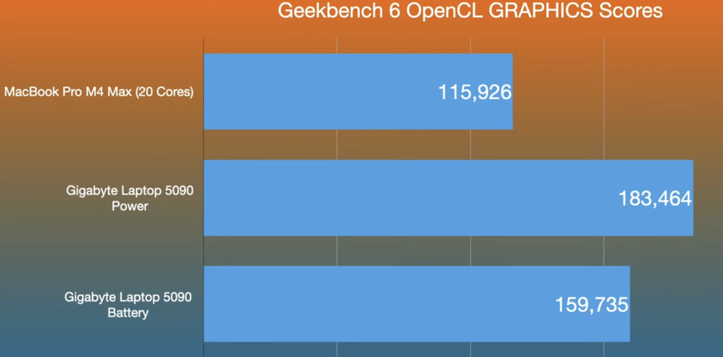 However, in 2025, when comparing the M4 Max MacBook Pro to PC laptops equipped with the flagship NVIDIA GPU, the RTX 5090, which costs the same as a M4 Max MacBook Pro, the MacBook Pro gets destroyed, it is not even close.