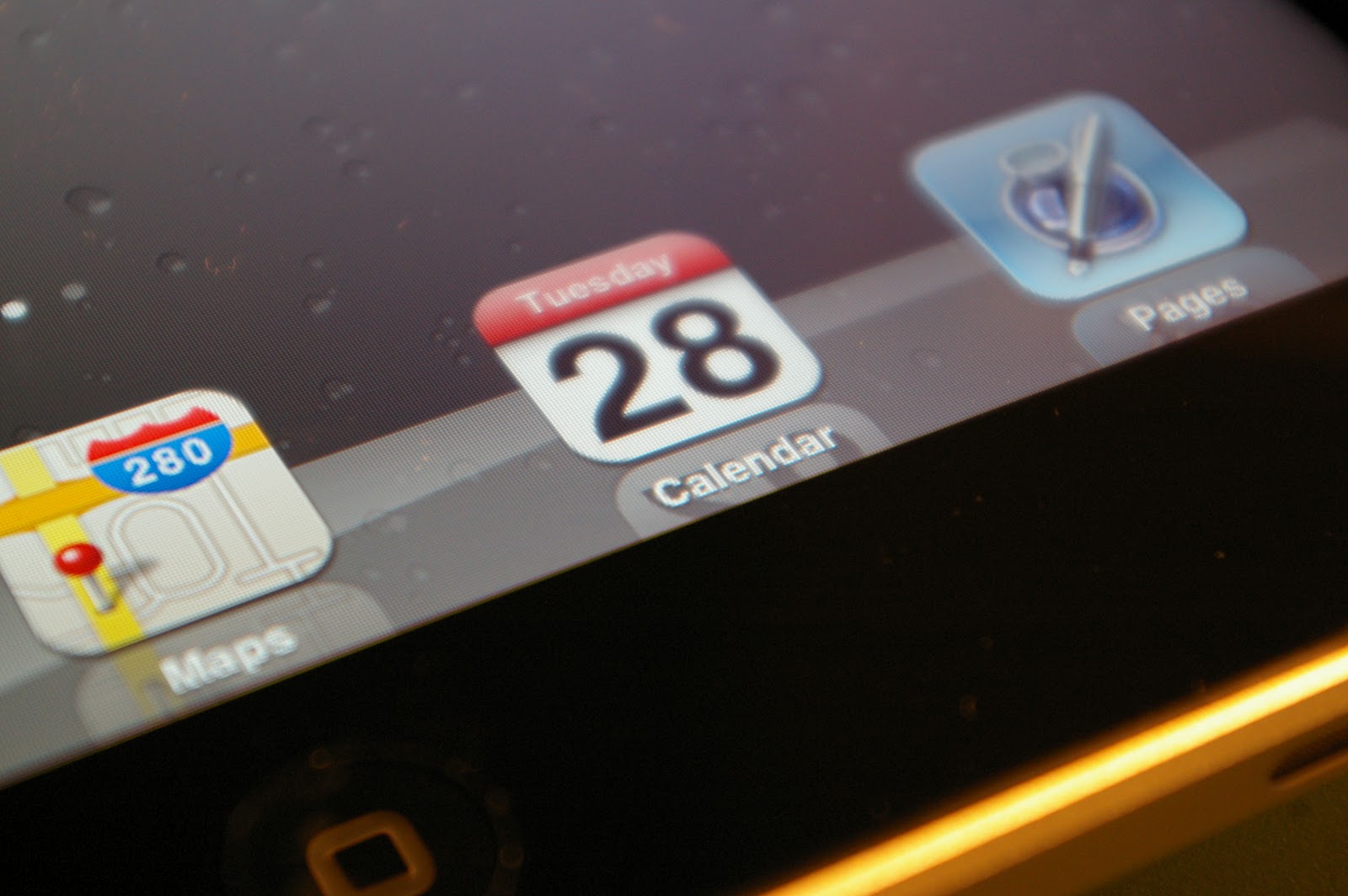 Just compared the photo with my iPad2 to to find out if it was in landscape or not, and if you compare the water drops you can see that is in "portrait" so looks like the will be no home button. if you don't trust me go check it on your iPadyou can see it by the water drops between the last two icons ( left to right)