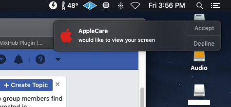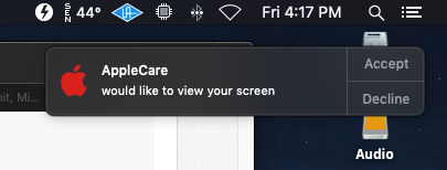 It has already been reported. If this is someone outside of Apple that would mean that they have hacked into Apple's screen sharing service. That is even more troubling than it being Apple. It would also indicate more Apple woes with security and privacy. Not good on top of the current FaceTime issue.But, you are assuming that actually IS AppleCare...