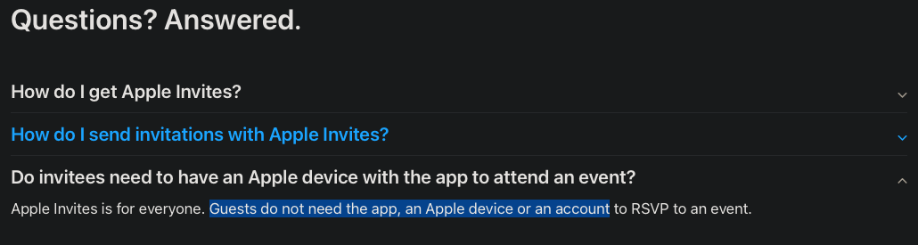 If the email address you enter is associated with an Apple Account it’ll ask you to login before you can RSVP. I just found out with a friend who has an Android, but his email address is tied to an Apple ID because he owns a Mac. He got redirected to an Apple Account login page. He didn’t know his password so he couldn’t continue. We didn’t see an option to go around it apart from using another mail address. Pretty annoying tbh.Please stop lying.