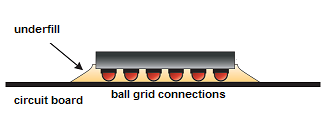Now, normally to prevent the balls from coming loose because of circuit board flex, thermal expansion, etc... a polymer called "underfill" is injected underneath.