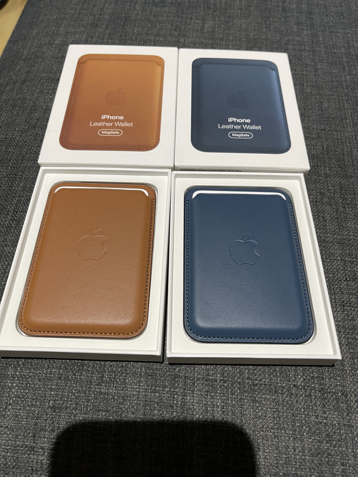 I have the Apple wallet in black and it looks great against the Pacific blue iPhone. I can fit 3 cards in it and they push up easily. So far my wallet has popped off twice on the iPhone but most of the time I'm careful how I pull it out of my pocket.