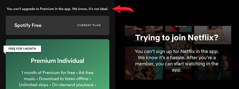 You still can’t sign up ”in app” they will have to direct you to their website. all that has changed is that they are allowed to provide ONE link directly to it. So those screens will only minimally change.Exactly.
