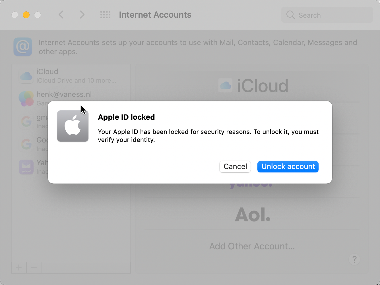 I can use the locked out account on my MBP16, but as shown here, not on my M1. The question: why is my mail-identity working, but locked into an iCloud account security system?