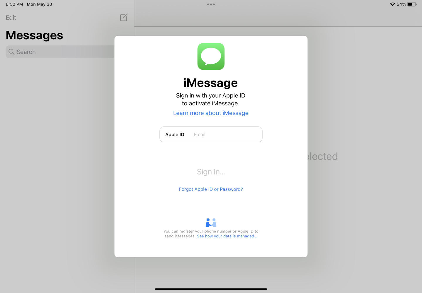 Yes, my mistake. Regardless, the process is the same. It doesn't matter whether it's a Mac, iPad, or iPhone. You have to sign in to disable iMessages. You can disable literally all of the iCloud features if you want, but you still need to sign into the device to disable. If this bothers you, I get it. But there's no other way around it.So I have to sign in to avoid signing in? Also this is not an iPhone. From my initial post on this subject:
