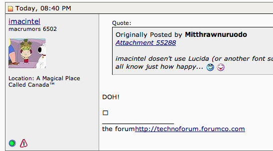 This has been a rather unusual thread. The conversation isn't especially stimulating, but it seems that everyone feels the need to post an Apple logo, just to see if they can do it.