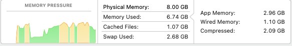 - With Lightroom and Photoshop both open, the memory pressure was often in Yellow and Swap usage around 6-7GB. This had a noticeable impact on some of the complex operations in Lightroom
