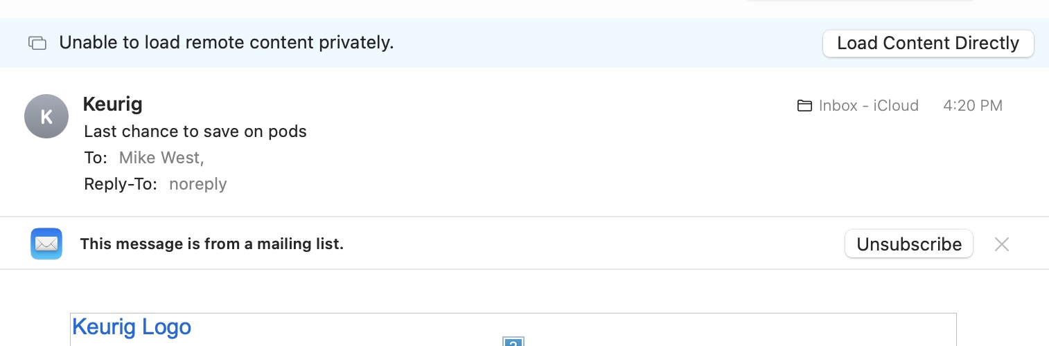 I don’t know if this makes any difference or not, but if I run OWA (exchange server on web) on my macbook it won’t work with my VPN on…but oddly if I am connected through some public networks (the ones where you get a captive prompt) it will not work without it.just realized today, that when my vpn is running, remote content does load in mail automatically; just not sure what that means. anyone have thoughts? or can test this out as well?