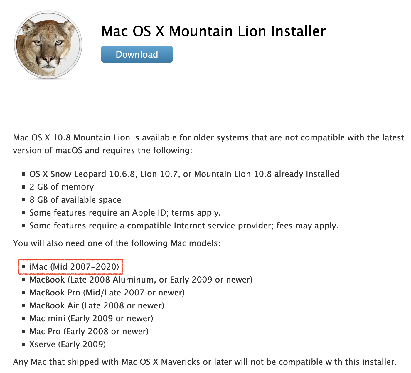 Odd because they mention at the beginning, at Mountain Lion is for older systems that are not compatible with the latest version of MacOS, but an iMac from 2020, or 2019, etc., would be compatible with the latest version of macOSforums.macrumors.com