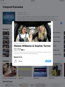 Right now, "Carpool Karaoke: The Series" is limited to Apple Music subscribers who have subscribed to a free trial or who pay the $9.99 per month fee for the service. Starting later today, the series will be available to watch in the TV app on iPhone, iPad, and Apple TV even if you don't have an Apple Music subscription.