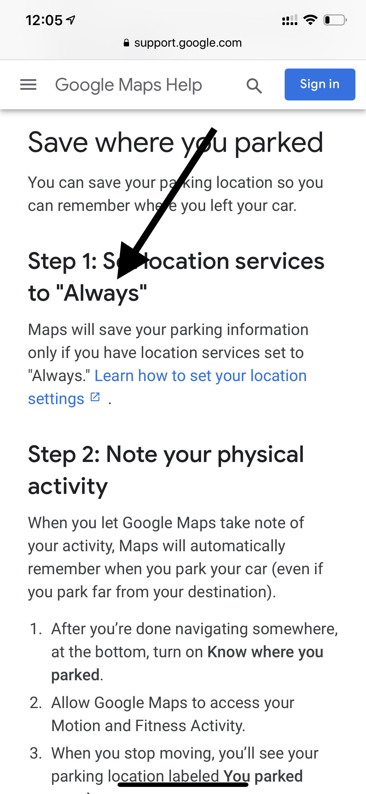 While I did not know this when I went to pin my parking location; I WOULD NEVER ALLOW GOOGLE TO "ALWAYS" track my location due to their dubious practices. So since I had selected "only while using app" I basically was screwed!!! So what to do right!?