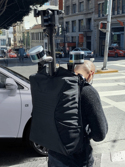 In fact a quick Google search just found that you can actually apply to borrow one of these rather easily: https://www.google.com/streetview/loan/. I just searched for "Google map backpack" and this was the first result. Nothing similar for "Apple Map backpack" however...