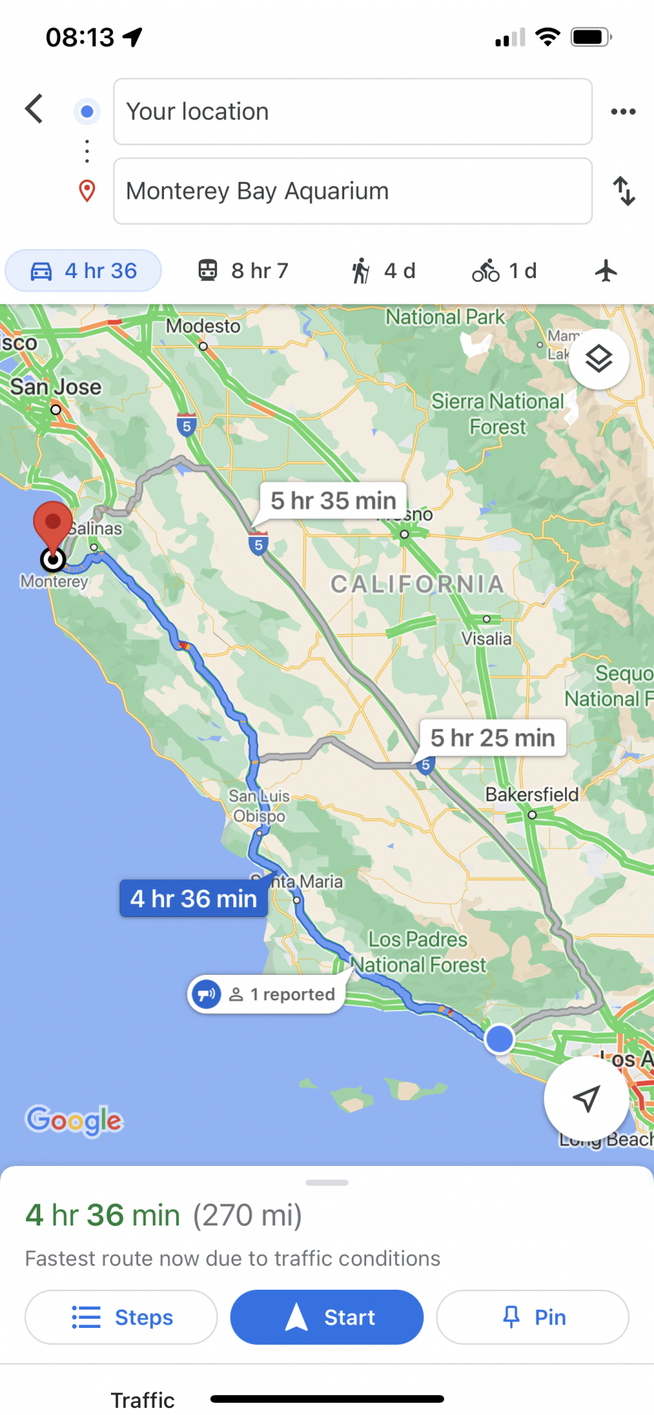 Recent trip to Napa Ca.  I wanted to stop at Monterey Bay Aquarium, Winchester House, and Golden Gate Park on my trip up and planned for two days.  In Google Maps I can place the entire trip with multiple stops adjusting on the fly as traffic or other aspects change.  I cannot do that in Apple Maps.  I wanted to do the US 1 to Monterey but AM would not let me even choose the route on either my iPad or iPhone.  Surprisingly GM would not either on an Apple device but I could pick a midtrip point like Moonstone to force it on the map.  However it would allow GM to mapit on my Android device. (see pics below)