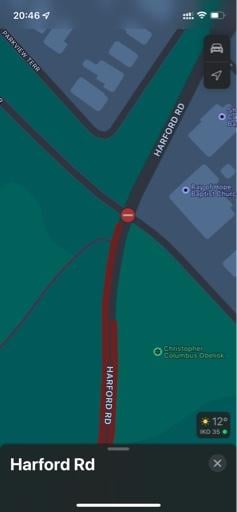 1) Screenshot of today’s road closure on Harford rd in Baltimore - notice that road closure marking ends before the crossroad