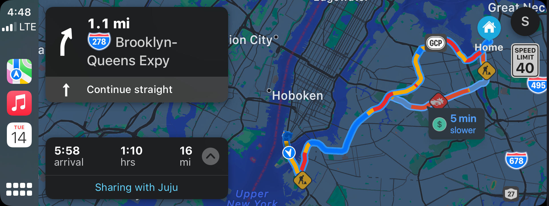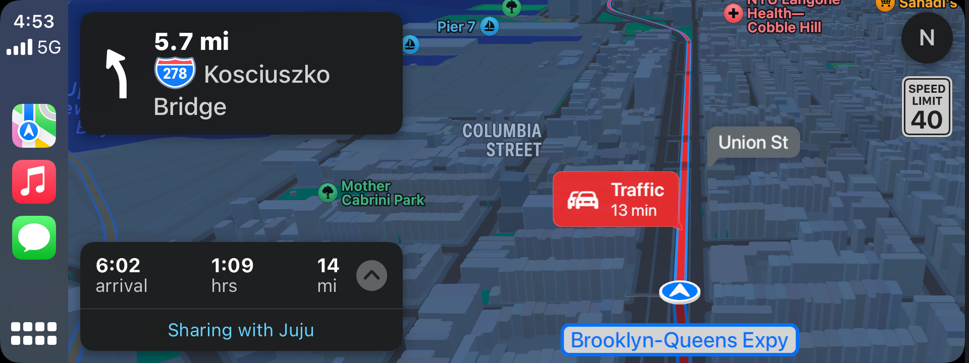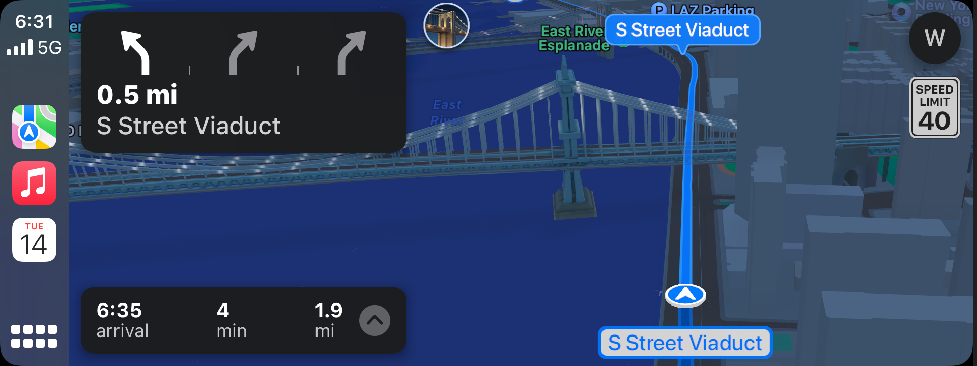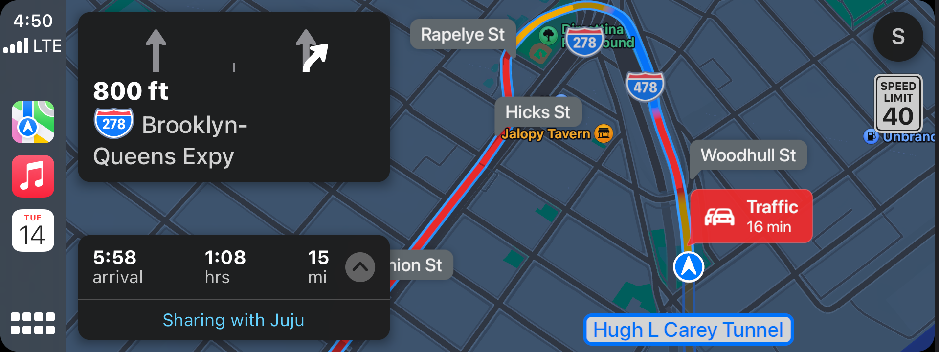 Also, both of the shots have different versions of the label sizes. By default, Maps on CarPlay currently loads with the top version...oversized road label bubbles, with tiny POI icons and labels. The labels on the bottom photo will