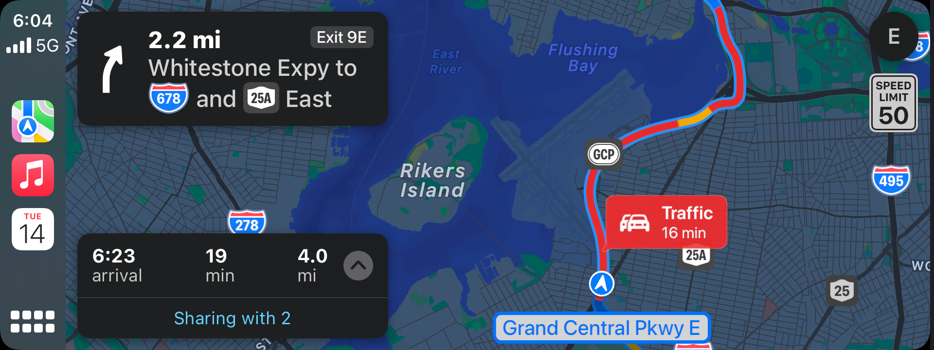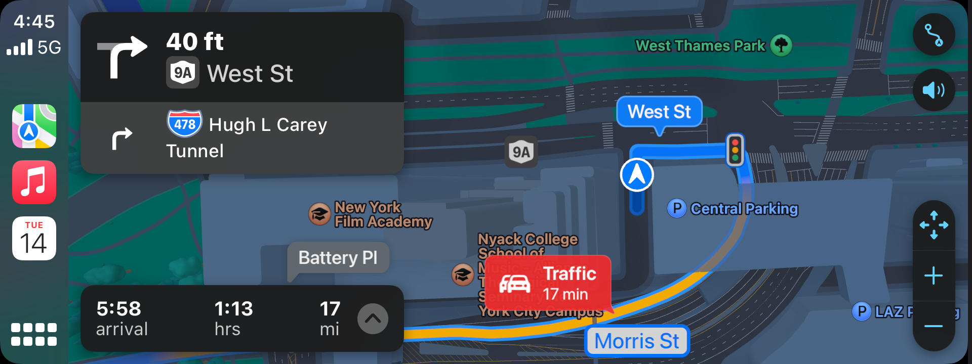 That gives me the bottom photo labels, which has moderately smaller road label bubbles, but much larger POI labels. This version can also be seen regularly on the Maps screen of the CarPlay dashboard.