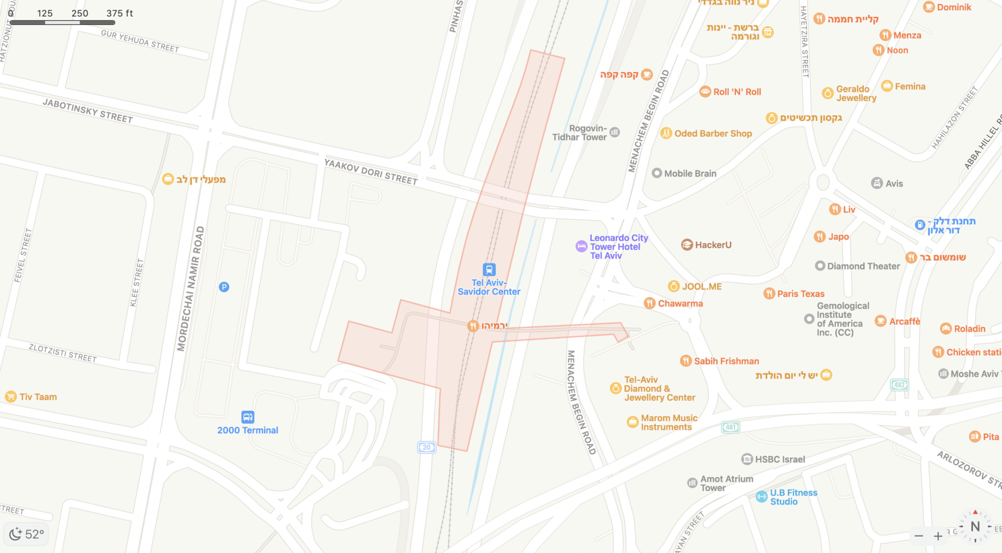 It's worth noting though that it looks VERY basic. For instance, if I look at a station near me here in the US, I can see the shading/outline of the station with all of the entrances marked. Entrances are marked whether it's an underground station, above ground station that is enclosed, or an above ground station that is just a platform outside with no actual building. The one I found in Israel has the shading/outline but that's it. None of that other information. So it's looking like a