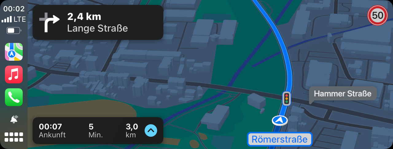 The lane guidance info provided in the detailed maps is pretty amazing. Turning South off 42nd street, Maps knows you won’t (or shouldn’t) turn wide into the left lane, but does let you know early on that you should move left since you will need to turn left a few blocks up to head through the Midtown Tunnel.