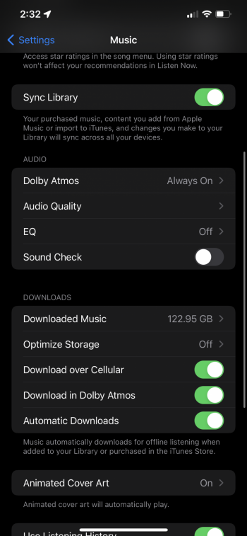 Oh man. I have 32GBs of music 😂 should be about that for me. Got an 256 iPhone too luckily.Went from 35GBs of music to 122GB lossless and Dolby Atmos. Glad I got 256GB iPhone.