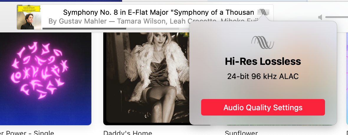 for now I will keep my dac manually at 96k. there should not be audio quality loss with upsamplingSo Apple expects me to switch sample rates in Audio MIDI with every song, as I switch between albums that are "Apple Lossless" and "Apple Hi-Res Lossless". That is a fail.